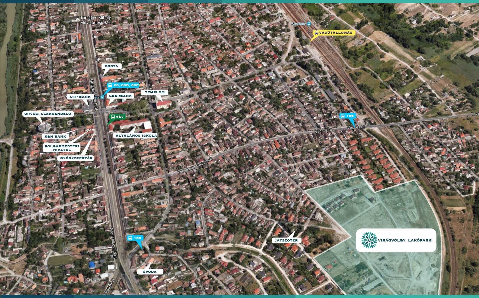 A Hősök terétől elindulva a Szitás utcán déli irányban haladva - akár egy rövid sétával - jutunk el a Virágvölgy Lakóparkhoz, ahol a XXIII. kerület - Soroksár - újkori történetének legnagyobb lakópark projektje valósul meg a Virágvölgy Lakópark keretein belül. A beruházás 50 db újonnan felparcellázott és közművesített telkén 100 db új építésű ikerház, azaz 200 db új építésű lakás építése kezdődött meg, melyeket további közel 100 db új építésű ikerház követ a későbbiekben. A nagyjából 100.000 nm-en elterülő lakóparkban kisebb szolgáltató ház megépítését is tervezi a beruházó, saját postával, gyermek napközivel, vásárlási lehetőséggel és egyéb szolgáltatásokkal, a leendő lakók kényelmének minél magasabb szintű kiszolgálása érdekében. A szolgáltató ház mögött, szinte a Virágvölgy Lakópark részeként megtalálható egy EU szabványnak megfelelően felújított játszótér is, a kisgyermekes szülők legnagyobb örömére. A Virágvölgy Lakópark modern megjelenésű, a mai kornak minden szempontból megfelelő fiatalos épületeivel, valamint a projekt méreteiből adódó, új és igényes épített környezete miatt is különleges, üde színfoltjává válik a kerületnek, melynek előnyeit a leendő tulajdonosok maximálisan élvezhetik.